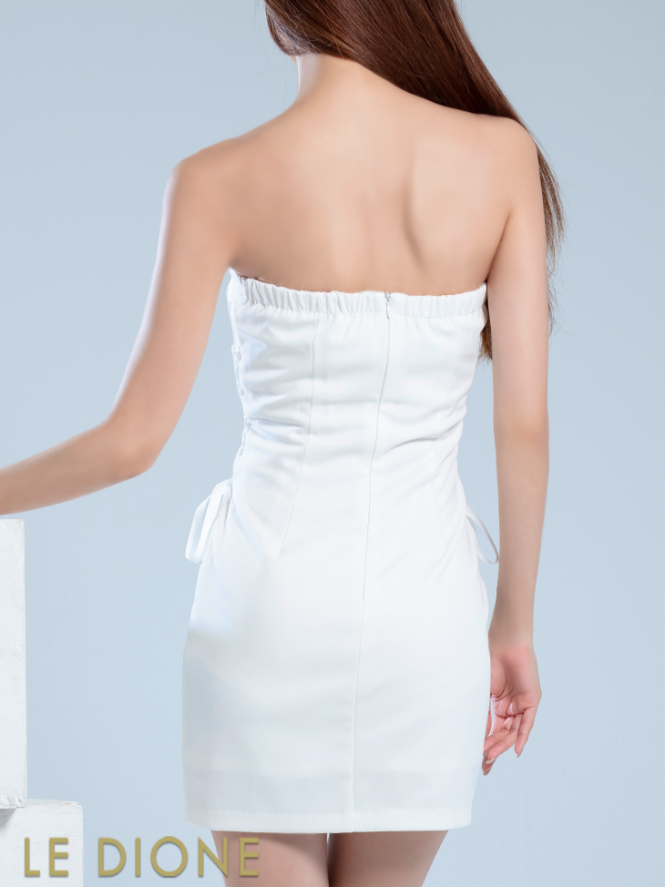 サテンリボンをクロスさせたサイドラインがポイントのベアミニドレス!