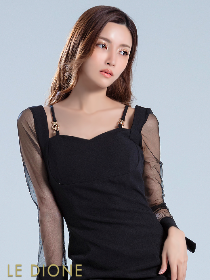 シフォン素材のシースルー袖で気になる二の腕をカバー!