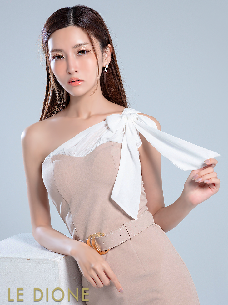 大人のミディアム丈×大胆なリボンモチーフで大人エレガントドレス!